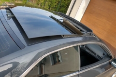 Samochód w kolorze Szary Manhattan Metalik, w środku wykończony naturalnym szarym drewnem dębowym oraz profilowanymi i podgrzewanymi fotelami ze skóry co wraz z systemem oświetlenia wewnętrznego ambiente i panoramicznie otwieranym szklanym dachem wyposażonym w roletę przeciwsłoneczną powoduje niesamowity efekt.